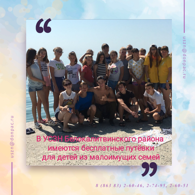 В УСЗН Белокалитвинского района имеются бесплатные путевки для детей из малообеспеченных семей: