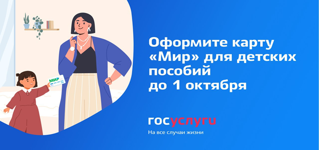 С 1 октября 2020 года детские пособия можно будет получить только на карту «Мир». Карты других платежных систем для этих целей не подойдут. Период перехода на карты национальной платежной системы должен был завершиться до 1 июля, но его продлили до 1 октября. Пока очередной перенос срока не анонсировался. Если получаете пособия на детей, заранее оформите карту «Мир» и сообщите новые платежные реквизиты по назначению — в управление социальной защиты населения.